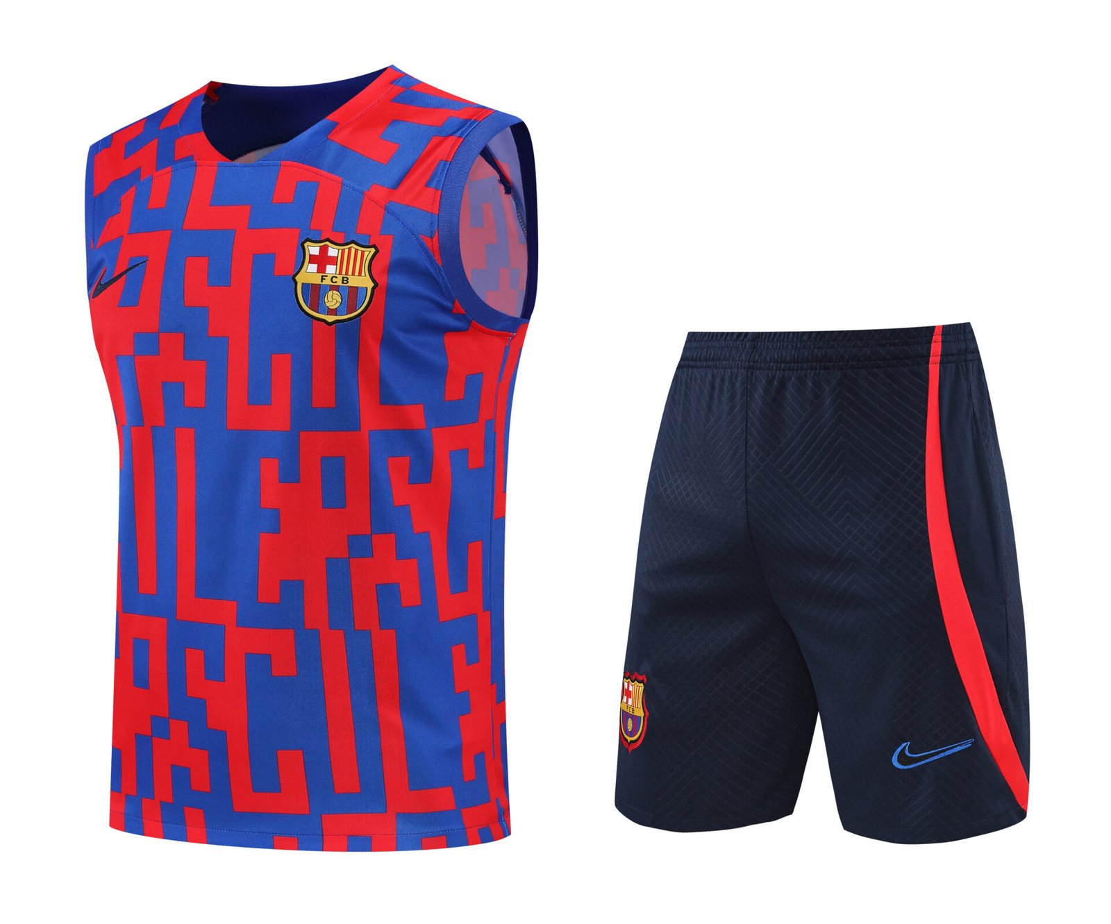 Conjunto tirantes FC Barcelona azul y rojo píxel