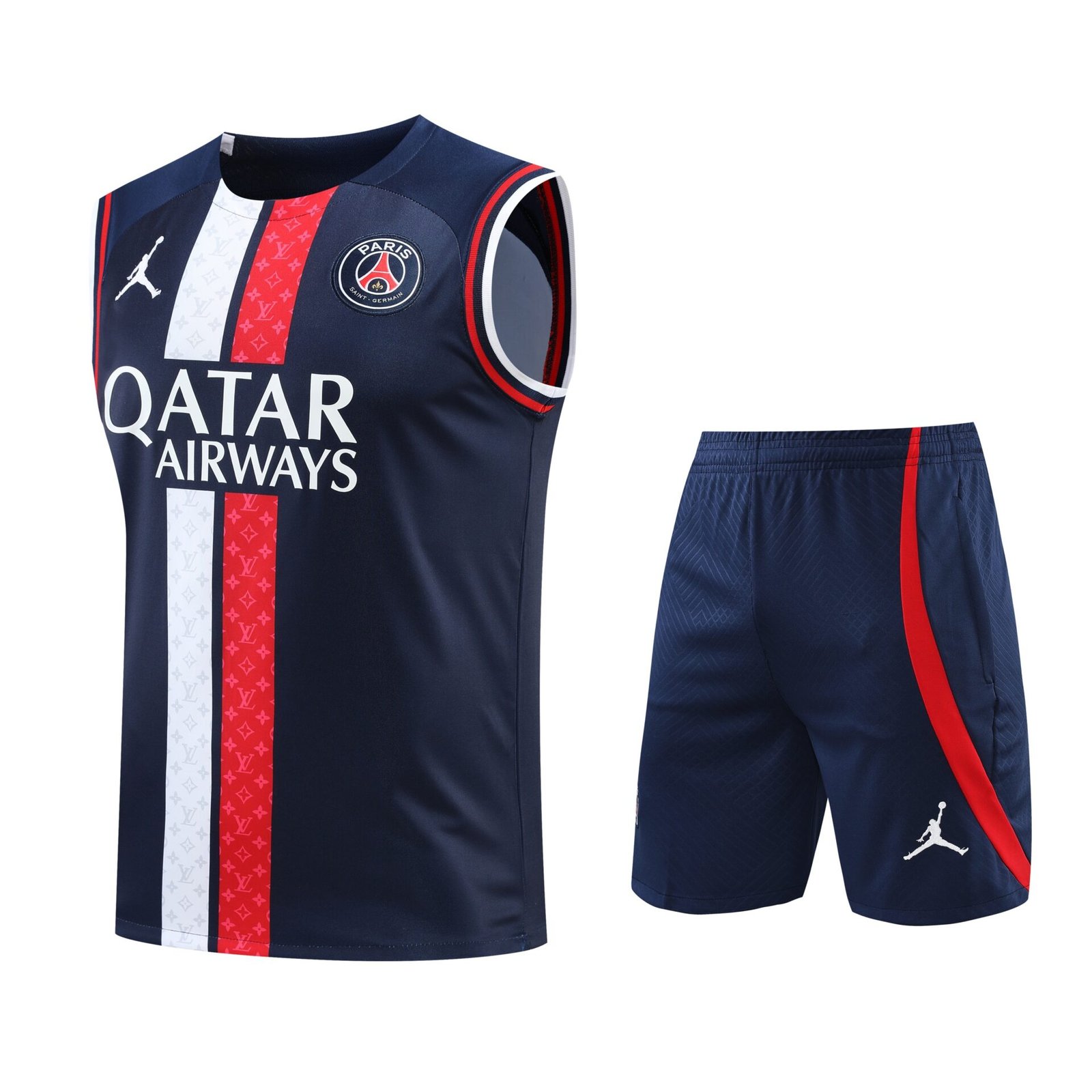 Conjunto tirantes PSG azul oscuro raya blanca y roja
